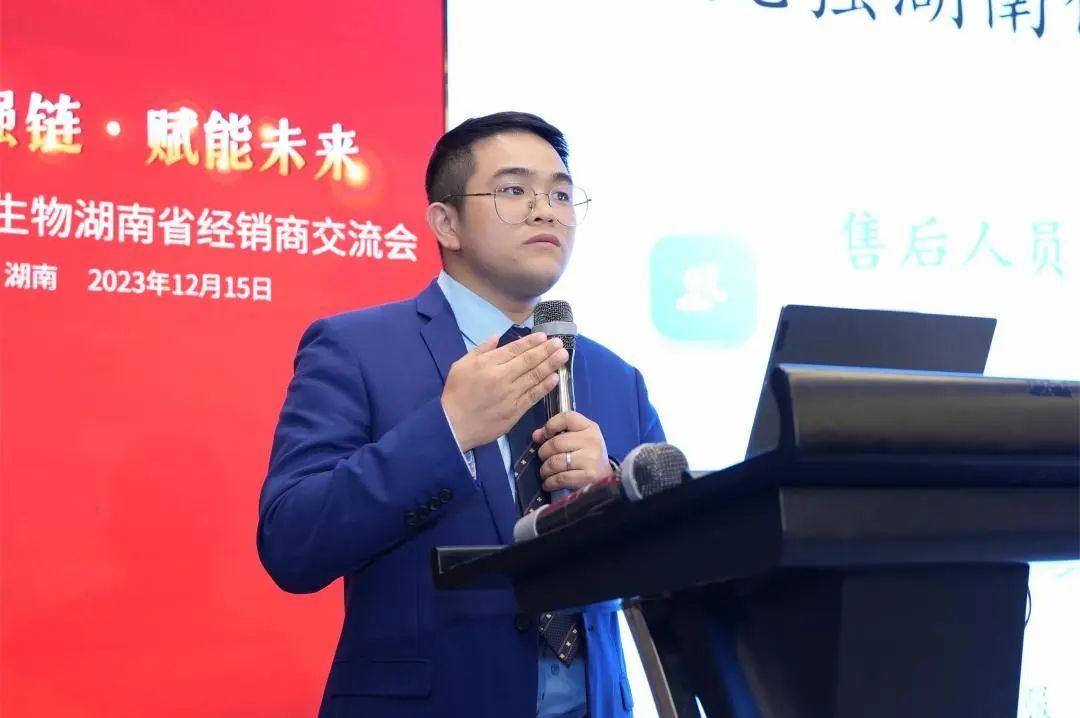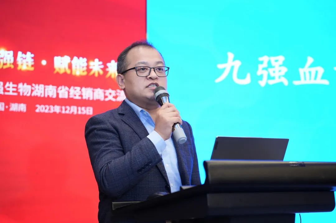 九強生物湖南省區(qū)總監(jiān)羅波先生針對湖南業(yè)務介紹及經銷商發(fā)展策略進行了細致的交流,就湖南目前情況、招商產品線與合作模式,帶來了非常精彩的內容分享。