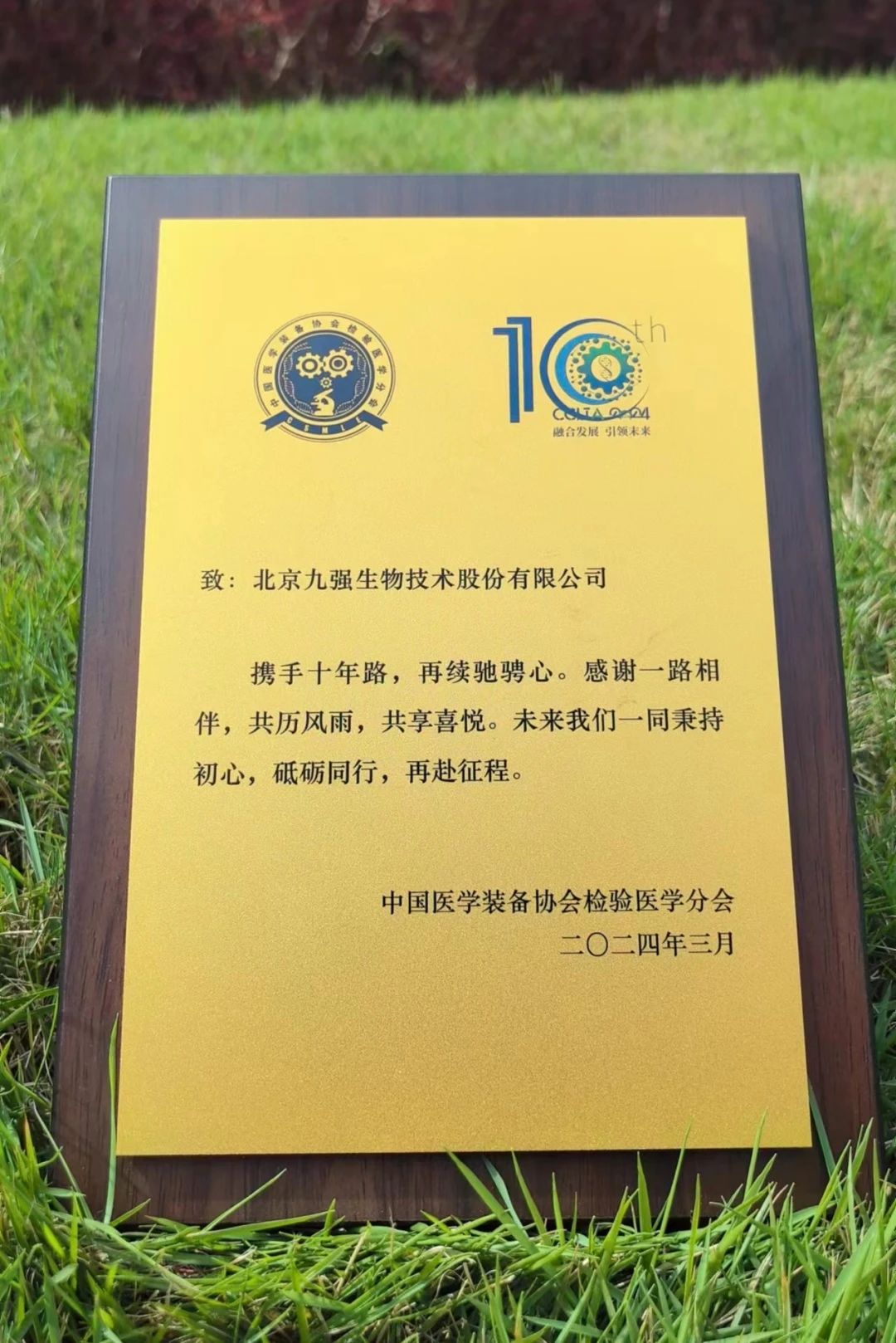 大會(huì)期間,中國(guó)醫(yī)學(xué)裝備協(xié)會(huì)檢驗(yàn)醫(yī)學(xué)分會(huì)第三屆委員會(huì)第三次全體委員會(huì)議同步召開(kāi),九強(qiáng)生物董事長(zhǎng)鄒左軍先生出席并上臺(tái)領(lǐng)取十周年企業(yè)感謝狀。CCLTA迎來(lái)十周年,在深耕學(xué)術(shù)、以發(fā)展為中心的精耕理念下,實(shí)現(xiàn)檢驗(yàn)醫(yī)學(xué)事業(yè)的大步拓新。