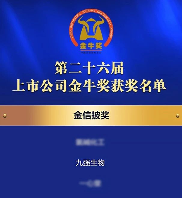 喜訊 | 九強(qiáng)生物榮獲第二十六屆上市公司金牛獎(jiǎng)“金信披獎(jiǎng)”